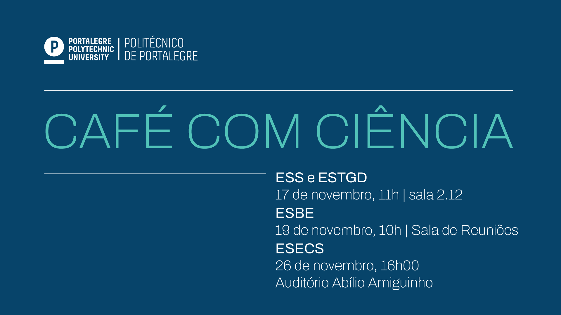 • ESECS – 26 de novembro, às 16h, no Auditório Abílio Amiguinho